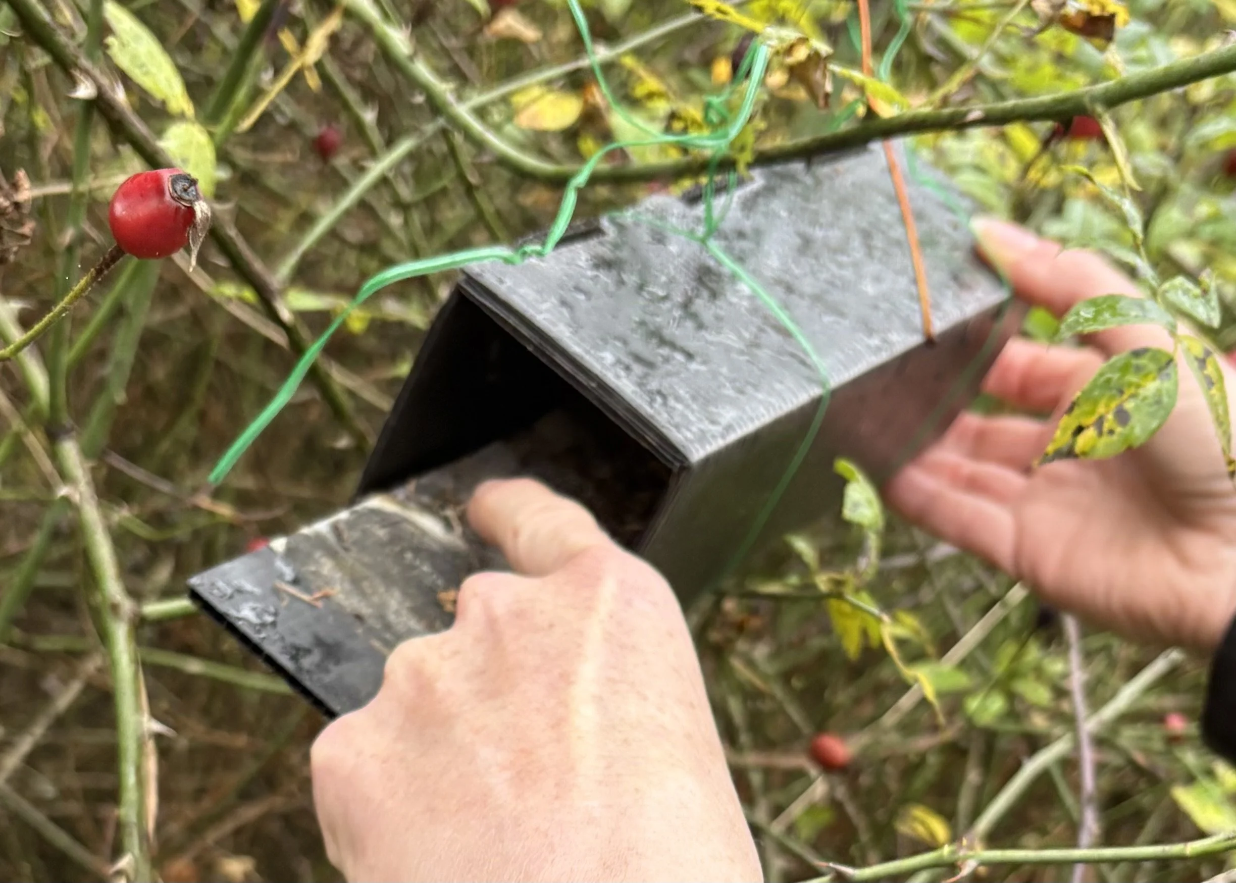 Surveying for hazel dormice includes using these tunnels. Animals leave their footprints inside allowing surveyors to identify which species has passed through.
