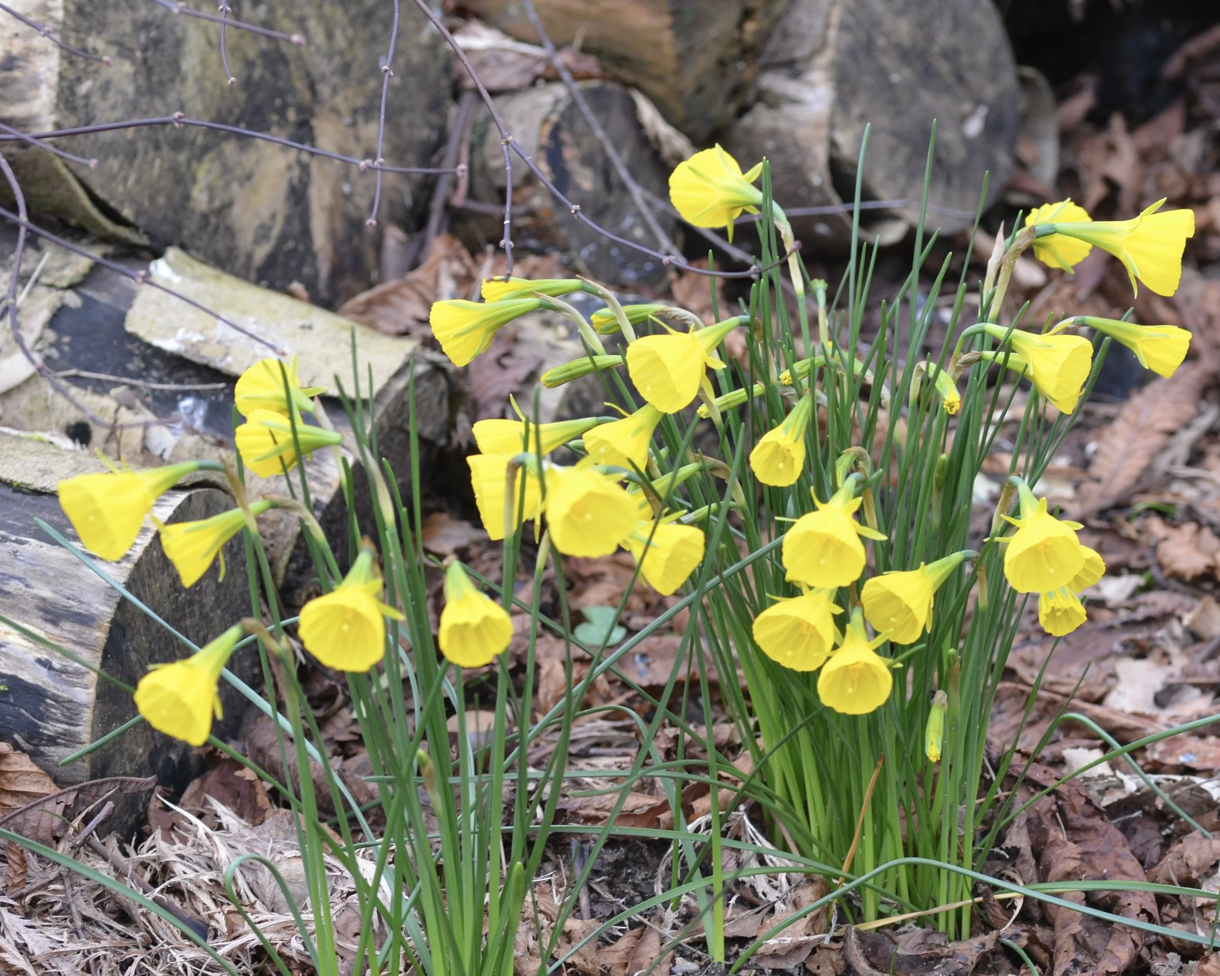 Narcissus ‘Rheinfeldt’s Early sensation’ now joined by the paler ‘Finland’ in early spring bloom.
