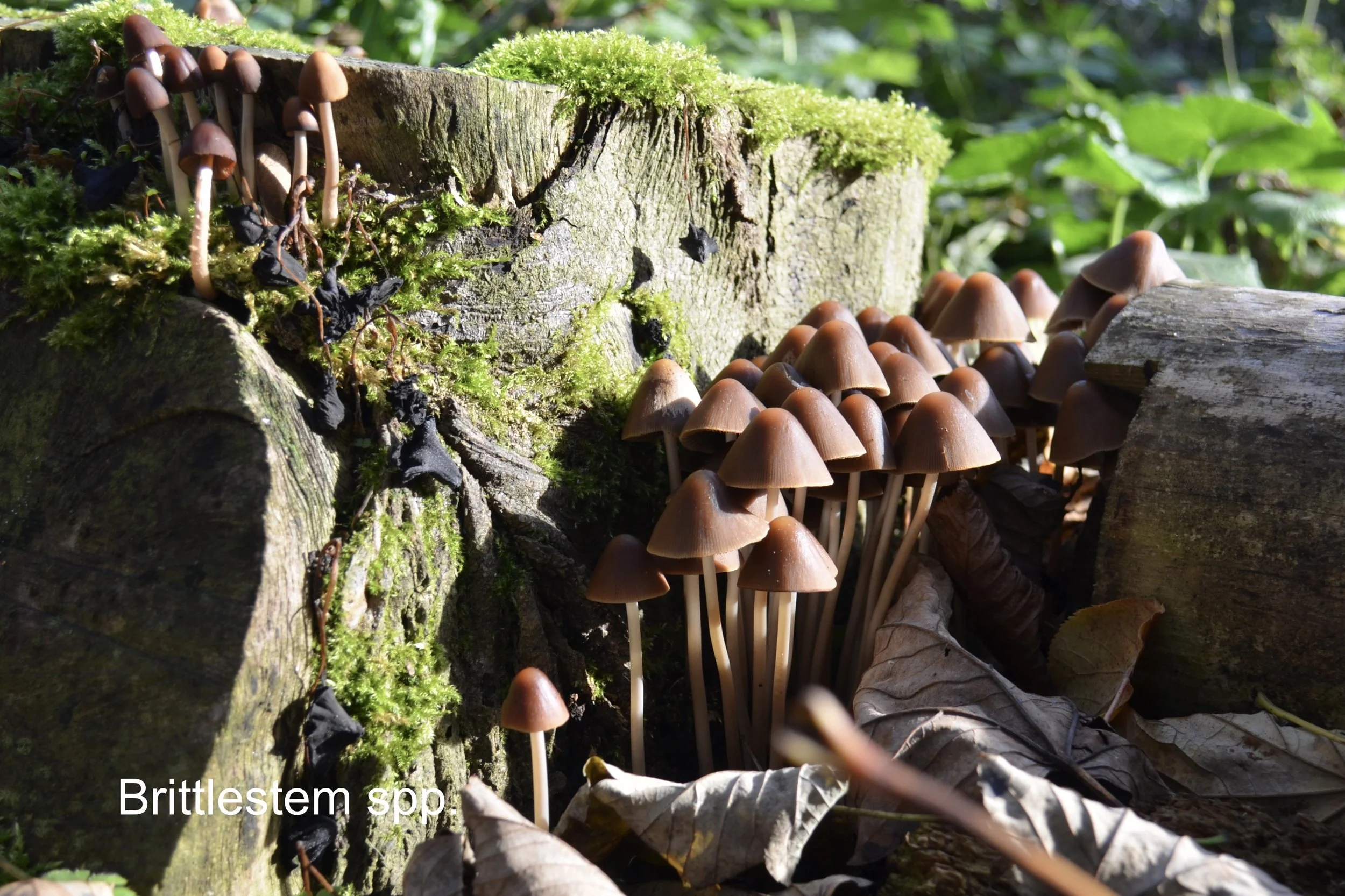 Brittle stems especially photogenic today nestled up against partially-buried logs. As a saprophyte, it helps to break down dead organic matter and returns nutrients to the soil.